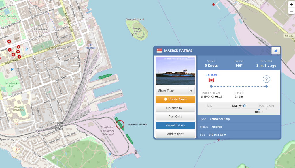 With the Land Rover on its way there’s only a little time left now before we fly out to be re-united with it (from the tracking app we are pleased to say that at time of writing the container ship ship is docked at Port of Halifax, as below).